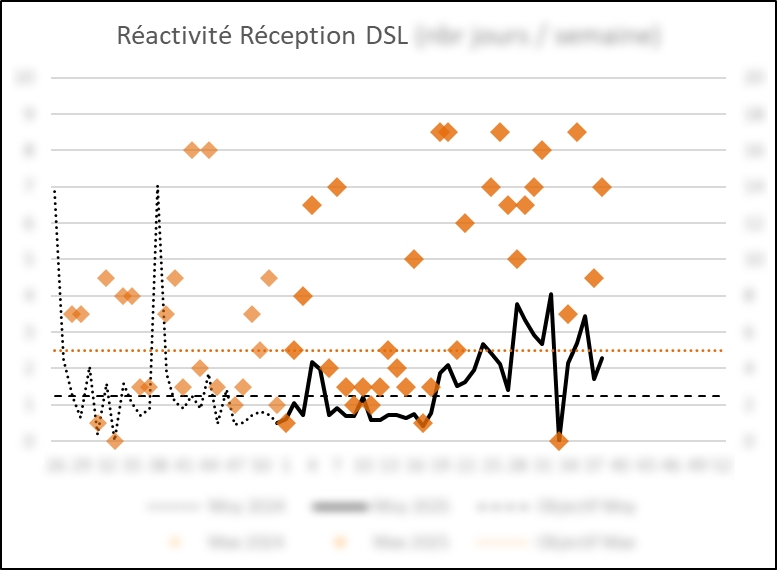 Les premiers résultats sont très encourageants. L’analyse de l’indicateur développé montre une tendance nette à l’amélioration de la réactivité du processus de réception. Les pics de délais maximum se réduisent progressivement, et la moyenne se rapproche de l’objectif fixé.